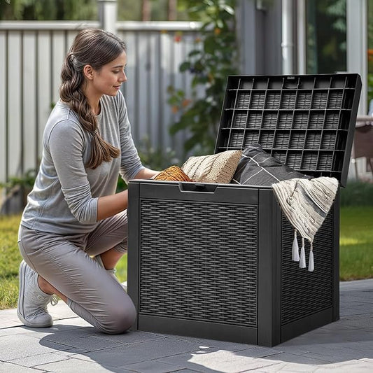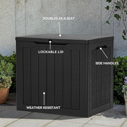 YITAHOME 30 Gallon Outdoor Storage Box, Small Water Resistant Resin Deck Box, Indoor Outdoor Lockable Rattan Storage Container for Patio, Garden, Cushions, Tools, Equipment (Black)