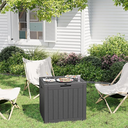 32 Gallon Deck Box Lockable Resin Indoor Outdoor Storage Box waterproof Outdoor Container for Patio Furniture, Pool Accessories, Cushions, Garden Tools, Sports Equipment