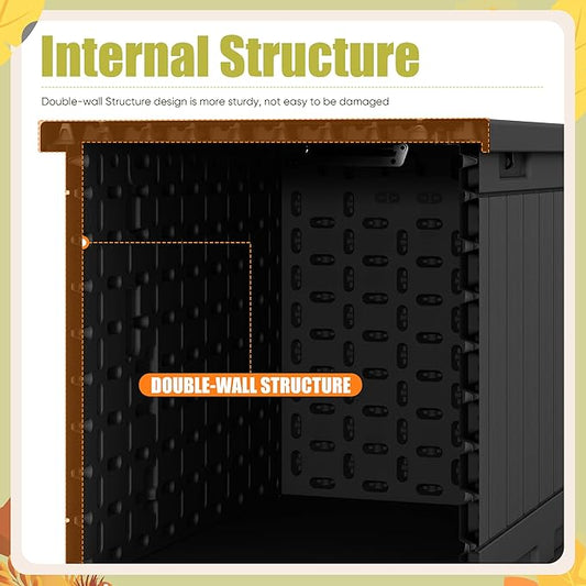 Devoko 90 Gallon Double-Wall Deck Box, Side Handles, HDPE Outdoor Large Storage Box Waterproof and Lockable for Patio Furniture, Garden, Pool (Black, 90 Gallon)