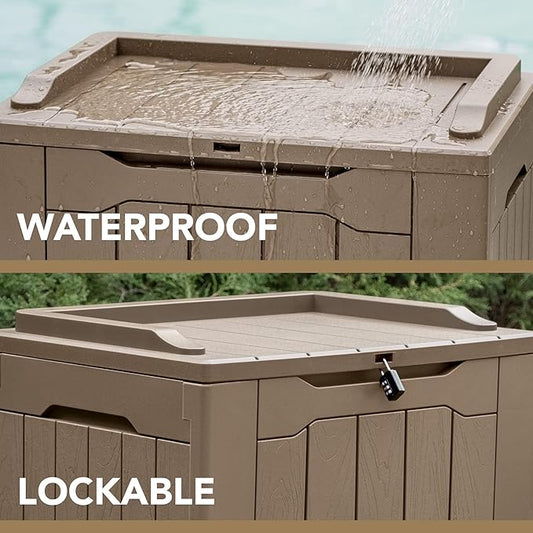 Devoko 30 Gallon Resin Deck Box Outdoor Indoor Waterproof Storage Box for Patio Furniture Pool Accessories Storage for Cushion Garden Tools (30 Gallon, Light Brown)
