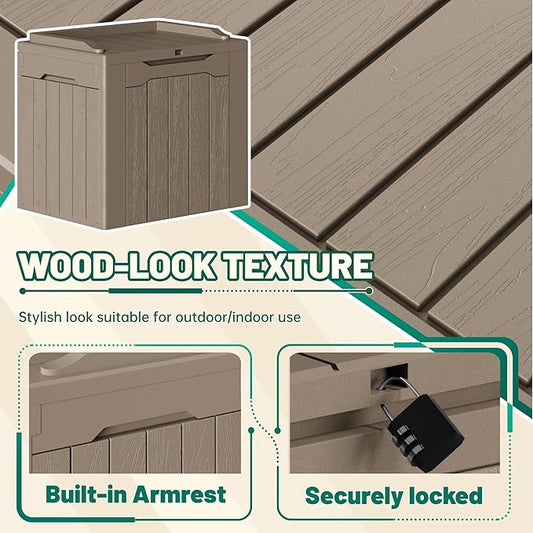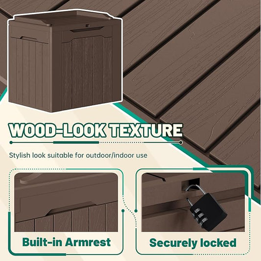 EAST OAK Outdoor Storage Box, 31 Gallon Deck Box, Waterproof Resin Storage Bin for Patio Cushions, Gardening Tools, Accessories, Lockable, UV Resistant, Brown