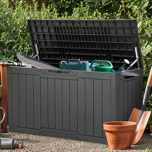Mars Villa 150 Gallon Outdoor Storage Box Waterproof, Large Resin Deck Box for Outdoor Patio Furniture Cushions, Pool Supplies, Garden Tools, with Hydraulic Hinge, UV-Resistant and Weatherproof, Black