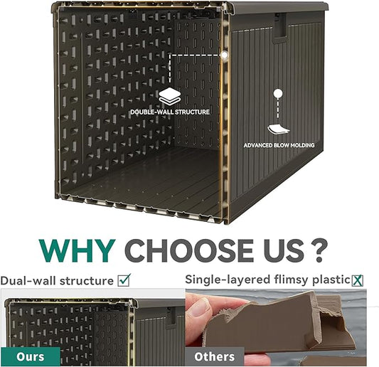 100 Gallon Double-Wall Resin Deck Box - Lockable Waterproof Outdoor Storage Box, 1000lbs Capacity & Doubles as Seating for Patio Furniture - Garden Tools, Pool Accessories (Brown)