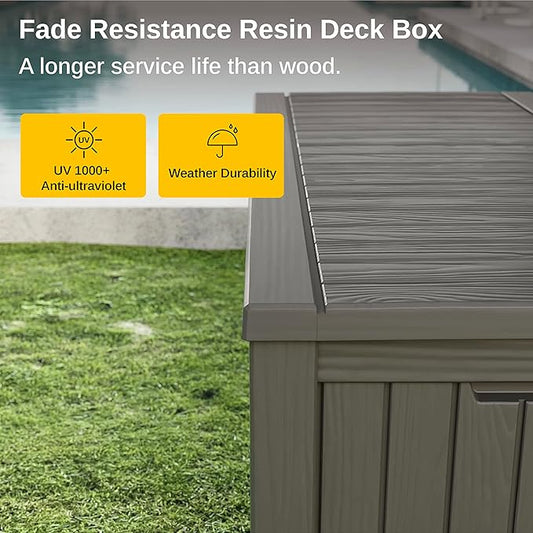 DRATO 45 Gallon Deck Box, Outdoor Storage Box for Patio Furniture, Patio Cushions, Gardening Tools, Pool Supplies 480lbs Weight Capacity,Waterproof Resin Storage Boxes