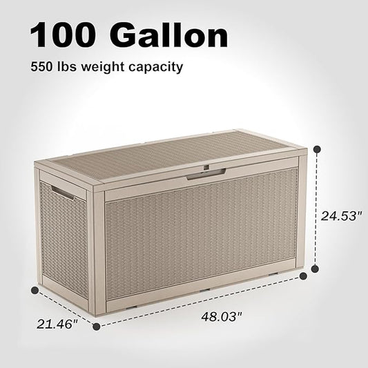 100 Gallon Outdoor Storage Box – Resin Deck Box with Lockable Lid, Waterproof Patio Furniture Storage for Tools, Garden & Yard Organization