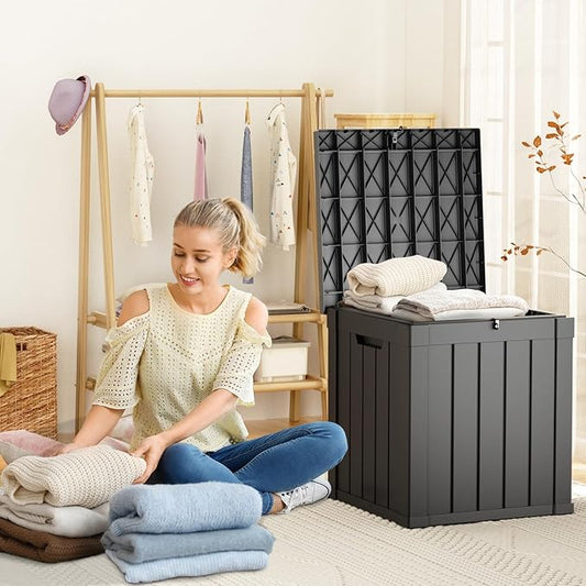 32 GallonOutdoor Storage Box,Resin Deck Boxes Waterproof, IndoorOutdoor Bin for Package Delivery, Patio Cushions, Gardening Tools, Lockable, UV Resistant