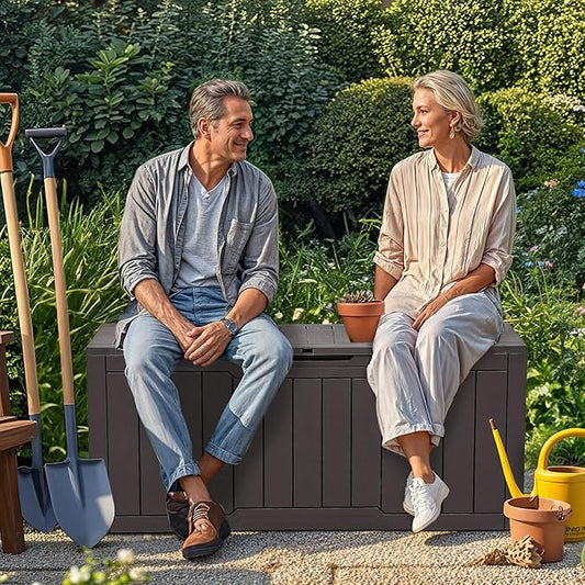 260 GallonOutdoor Storage Box,Resin Deck Boxes Waterproof, IndoorOutdoor Bin for Package Delivery, Patio Cushions, Gardening Tools, Lockable, UV Resistant