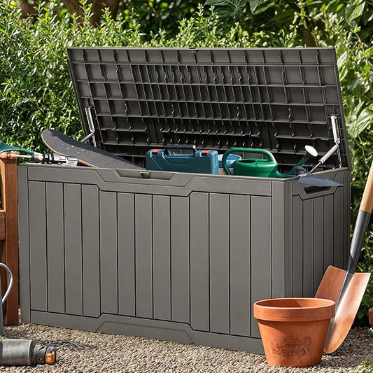 New 100 Gallon Outdoor Storage Box – Resin Deck Box with Lockable Lid, Waterproof Patio Furniture Storage for Tools, Garden & Yard Organization
