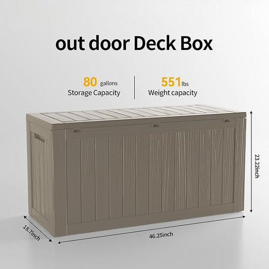 80 Plus Gallon Outdoor Storage Box, Waterproof Resin Deck Box Outdoor Storage Bin for Patio, Poolside, and Garden, Lockable & UV-Resistant, Ideal for Small Spaces, Brown