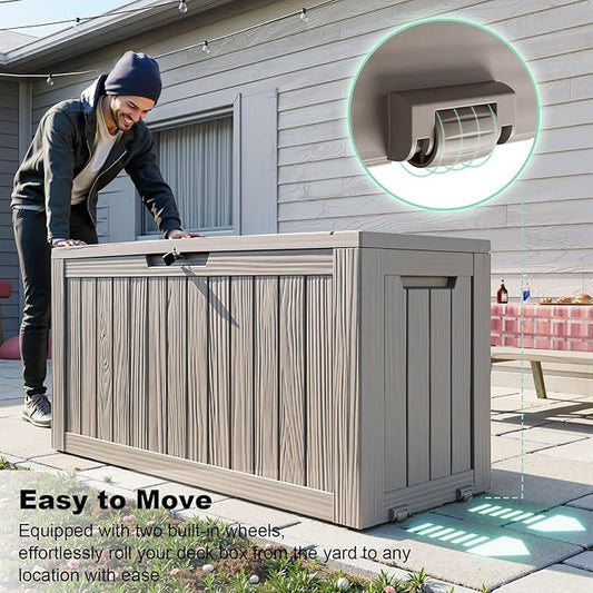 120 Gallon Deck Box,Resin Outdoor Storage Box with Lockable for Patio Furniture, Pool Accessories, Garden Tools Waterproof Outside Storage Box, Grey