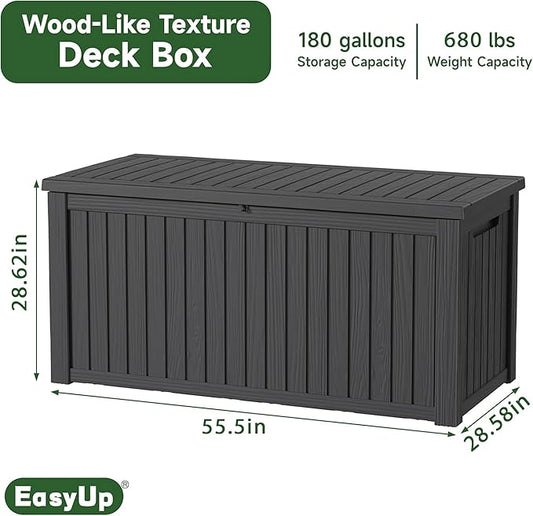 180 Gallon Deck Box,Resin Outdoor Storage Box with Lockable for Patio Furniture, Pool Accessories, Garden Tools Waterproof Outside Storage Box, Black