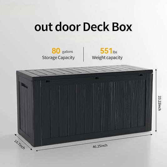80 Gallon Outdoor Storage Box Waterproof Lockable Resin Deck Box Large, Patio Storage Bin for Pool Accessories Cushion Furniture, Garden Tools, UV-Resistant Outside Delivery Black
