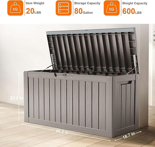 80 Gallon Resin Deck Box, Lockable Outdoor Storage Box for Patio Cushions Storage Furniture,Garden Tools, Pool Supplies, Weatherproof and UV Resistant- Grey (80 Gallon)