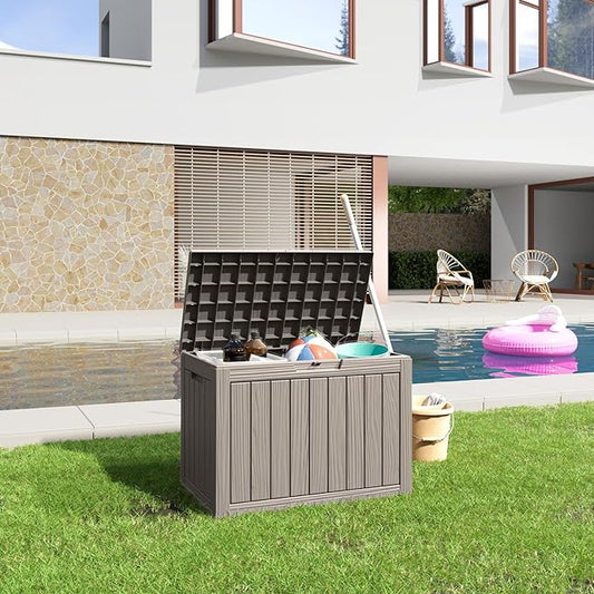 80 Gallon Resin Deck Box, Lockable Patio Outdoor Storage Box for Furniture, Garden Tools and Tools Storage, Waterproof Outside Storage Boxes - Grey