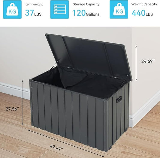 Outdoor Storage Box, 120 Gallon Metal Deck Box Built-in a Oxford Fabric Storage Bag, Lockable & Waterproof Outside Patio Storage Box - Gray