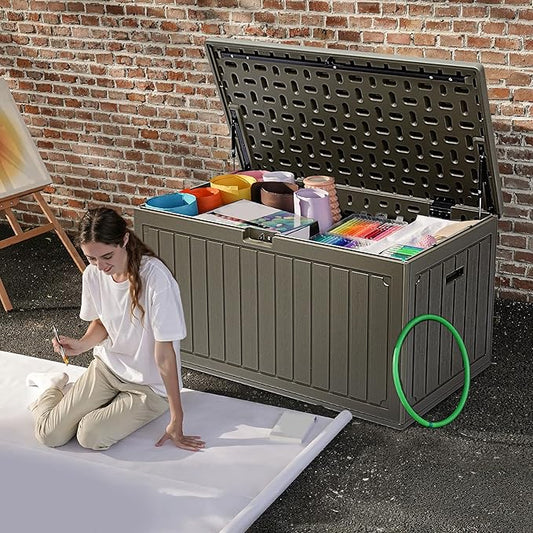 100 Gallon Outdoor Storage Deck Box Waterproof, Large Patio Storage Bin for Outside Cushions, Throw Pillows, Garden Tools, Lockable (Dark Gray Resin Lid)