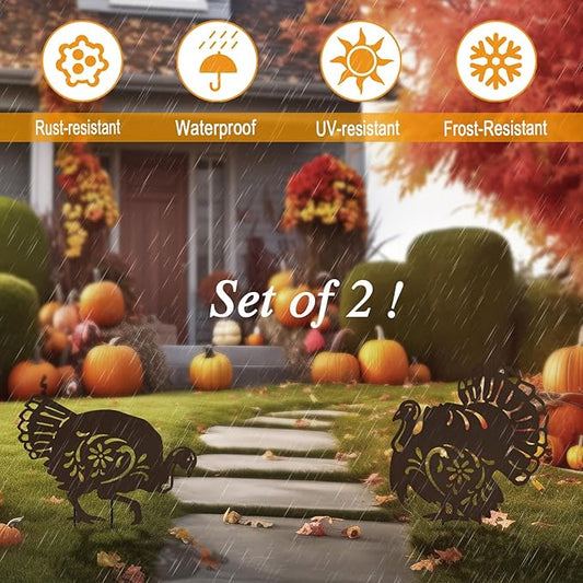 Set of 2 Metal Turkey Outdoor Decorations, Thanksgiving Decor Garden Stake,Fall Yard Porch Sign for Outside