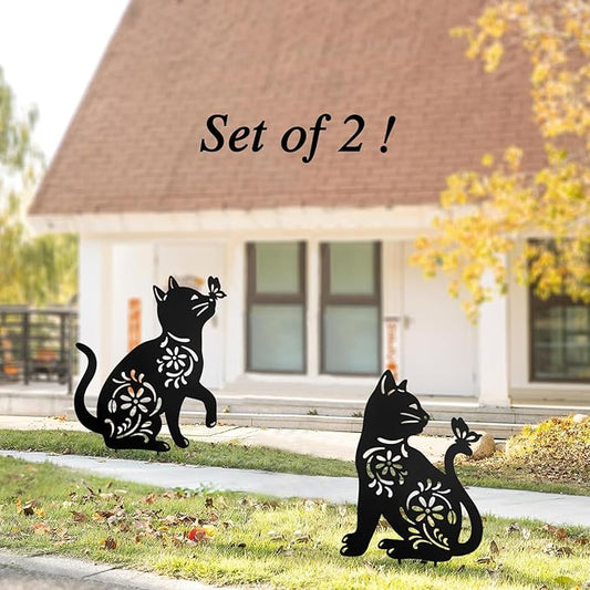 Cat Garden Decor,Metal Cat Decorative Garden Stakes for Outside,Patio,Outdoor,Charming Set of 2 Cats Yard Decor
