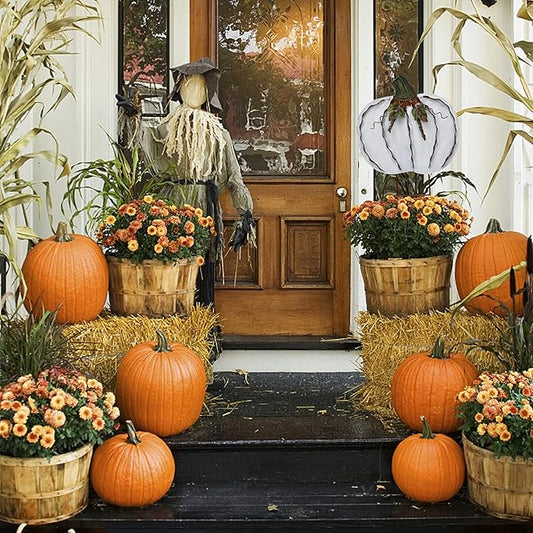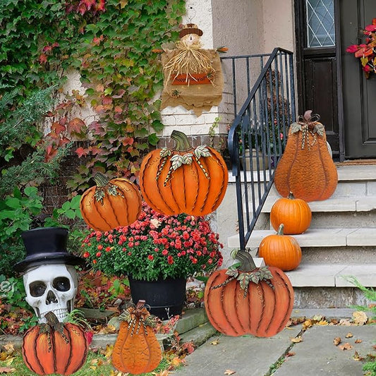 Metal Pumpkin Garden Stakes - Autumn Decorative Yard Signs - Indoor Outdoor Plant Flower Stake Fall Lawn Ornaments Pumpkin Decoration for Harvest Halloween (17.5"-A+B)
