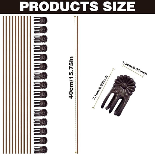 10Pcs Plant Support Stakes with 15Pcs Plant Clips, 15.75inch Tall Bendable Single Stem Sticks Orchid Clips Brown Helps Growth for Indoor Outdoor Flowers Rose Amaryllis