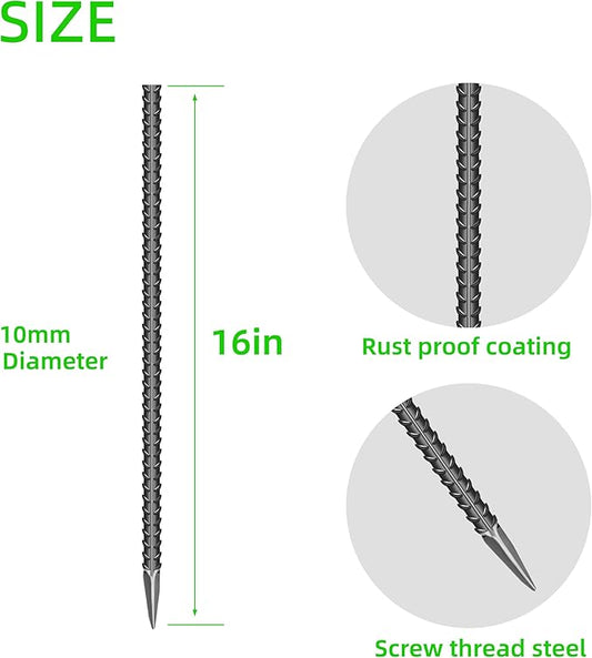 20 Pieces 16-Inch Garden Ground Stakes Galvanized Steel Rebar Stake Heavy Duty Anchors for Tents, Position Kits,Fences, and Trampolines