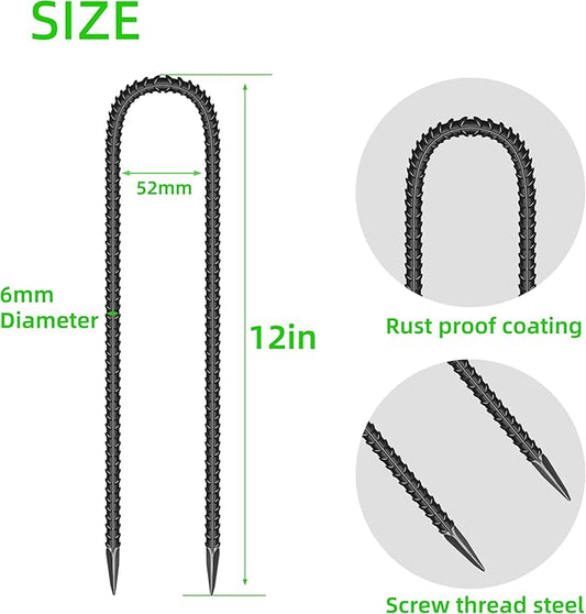 22 Pieces 12-Inch Garden Ground Stakes Galvanized Steel U Shape Hook Rebar Stake - Heavy Duty Anchors for Tents, Position Kits,Fences, and Trampolines
