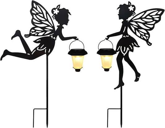 Solar Fairy Garden Stake Decorative Lantern, 2 Pack Metal Fairy Angel Garden Silhouette Lights for Lawn, Pathway, Patio, Yard Outdoor Decor