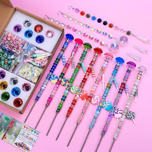 VICTLOV Crystal Suncatcher Making Kit, 400 Pieces with Beads, Snowflakes, Butterflies, Glass Balls for Garden Decoration, DIY Outdoor Hanging Ornaments (400Pcs Diamond+Pendant+Lollipop)