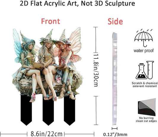 Fairy Garden Stake Decor, 2D Flat Acrylic Fairy Garden Decor Panel, Elf Yard Sign for Outdoor Indoor Yard Lawn Plants Pots, Fairy Yard Accessories (Three Fairies)