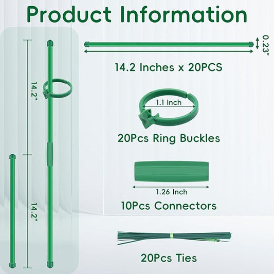 Plant Stakes, 20Pcs Plant Support Stakes Extended to 3ft 4ft 5ft, BOVITRO Garden Stake with Clips for Indoor Outdoor Plants, Orchid Sticks, Tomato Amaryllis Vegetable Stakes for Garden (14.2Inch)