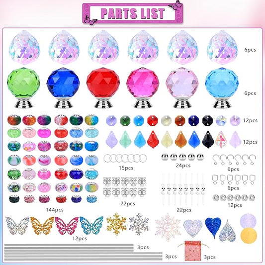 VICTLOV Crystal Suncatcher Making Kit, 340 Pieces with Beads, Snowflakes, Butterflies, Glass Balls for Garden Decoration, DIY Outdoor Hanging Ornaments (340Pcs Crystal Ball+Pendant)