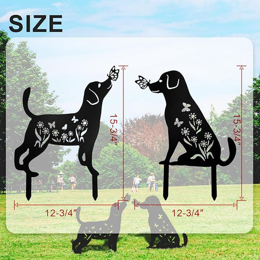 Decorative Garden Stakes - 2 Pack 15" Rust-Resistant Metal Dog Silhouette Outdoor Decor, Corten Steel Puppy Yard Art with Easy Installation for Gardens, Patios & Walkways (Black Lab Design)