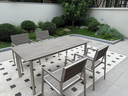 67" Rectangle HDPS Patio Dining Table, Aluminum Outdoor Patio Dining Table with Umbrella Hole, Weather-Resistant for Lawn, Garden, Yard, Poolside and Indoor Use, Silver & Gray