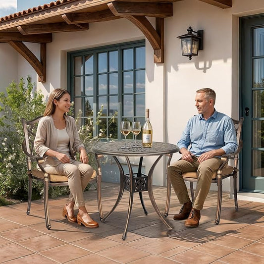Outvita Outdoor Dining Table, Cast Aluminum Round Patio Bistro Table with Umbrella Hole Weather Resistant Aluminum for Balcony Poolside Garden Lawn