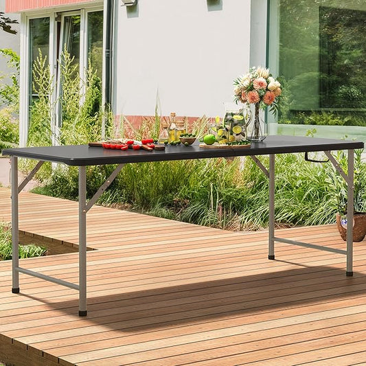 YITAHOME 8FT Heavy Duty Folding Table for Indoors & Outdoors Use, Versatile Rectangle Folding Table with Carrying Handle for Camping, Picnics, Parties, and Events, Black