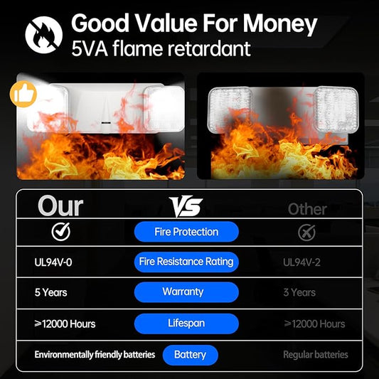 Led Emergency Light with Two Adjustable Head Integrated Commercial Emergency Lighting Battery Backup exit Light, Contractor Select, AC 120/277V (6 Pack)