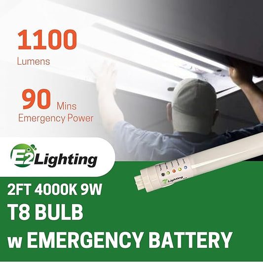 LED Emergency T8 Tube, 2FT-9W, with Integrated Battery Backup (4000K)