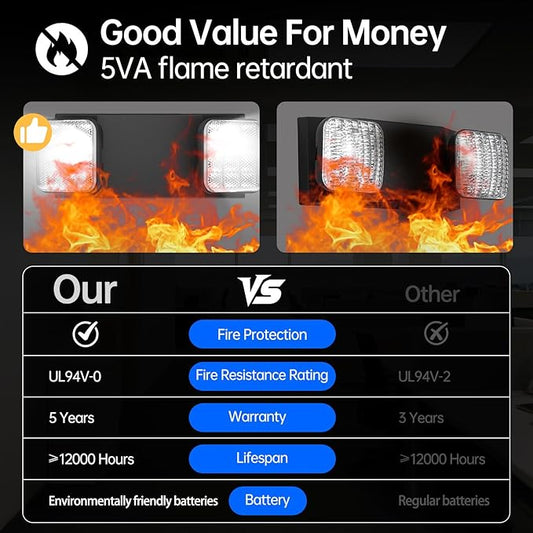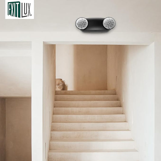 Qllite LED Emergency Light with Battery Backup, LED Commercial Emergency Lighting Fixtures Two Heads Adjustable, UL Listed, AC 120-347V, Energy Efficient for Business Schools Hospitals, Square Black