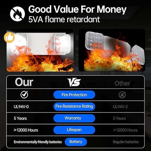 4 Pack White LED Emergency Lights with Battery Backup, Two Head Adjustable Emergency Lighting Fixtures-Fireproof Materials-Emergency Lighting Fixture/Emergency Light Home
