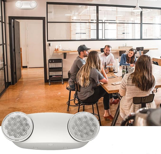 1 Pack LED Emergency Lighting Fixture with 2 LED Heads-Hardwired Adjustable White Commercial Emergency Lights with Battery Backup for Power Failure