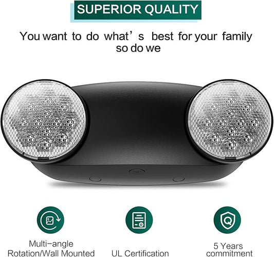 2 Packs Emergency Lights for Business, with Battery Backup,Hard Wired, UL 924 Certified,AC 120/277V,Two Head Adjustable LED Emergency Light.