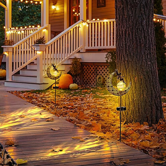 Fairy Garden Solar Lights Outdoor Moon Stakes, Waterproof Outdoor Metal Decor Gifts for Women Mom, Art Moon Sculpture for Yard, Patio, Garden, Porch, 2 Pack
