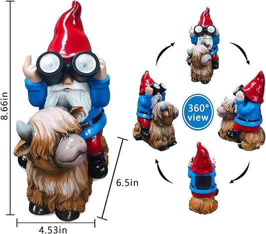 Gnome Garden Statue Solar Lights Outdoor Binoculars on Highland Cow,Birthday Gifts for Women/Men, Housewarming Gifts,Outdoor Decor for Balcony,Garden,Patio,Yard,Lawn(Cow Gnome)