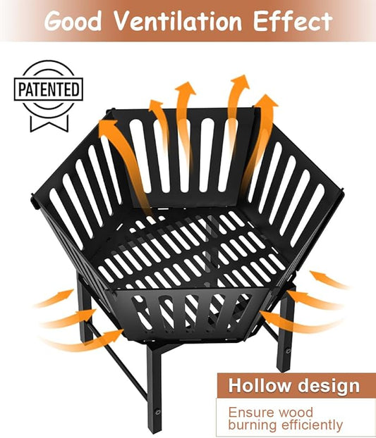 28 Inch Hexagonal Fire Pit,Wood Burning Firepits for Outside with Spark Screen&Poker,Metal Hex-Shaped Outdoor Fire Pit for Outside,Backyard,Bonfire,Patio,Garden,Picnic and Camping(Black)