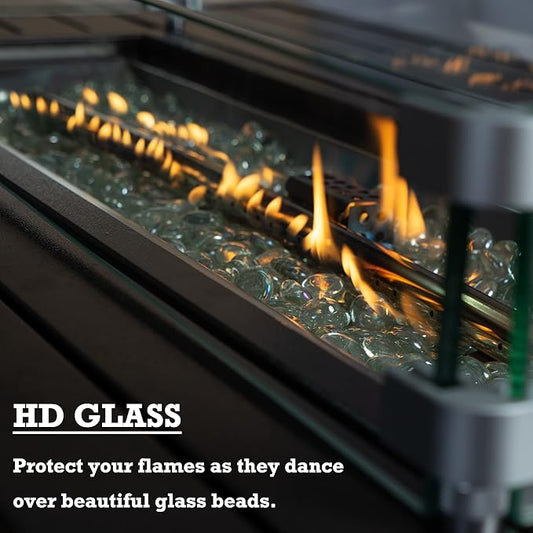 Duluth Forge DF450SS-G-RBLK Vent-Free Stainless Steel Outdoor Gas Fireplace Insert with Black Fire Glass Media, 24,000 BTU