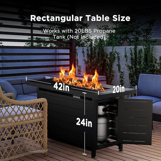 ZAFRO 43" Black Rectangular Metal Propane Gas Fire Pit Table with Lid, 50000BTU, for 20Lbs Tank, Warm& Comfortable& Reliable Fire Pit Table for Garden, Balcony