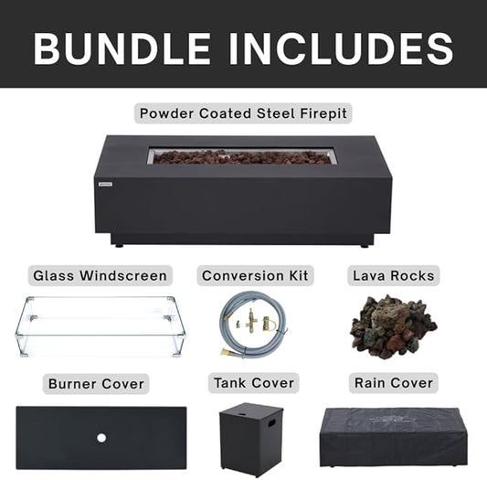 Westwood 50” Propane Fire Pit Smokeless Firepit Converts to Outdoor Gas Fire Pit for Outside Patio Firepit Table Includes Windscreen Rain & Tank Cover Lava Rocks Lid CSA Certified