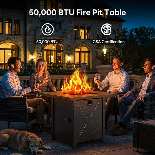 28 Inch Propane Fire Pit Table, 3-in-1 Multi-Use 50,000 BTU Square Gas Fire Pit with Lid & Lava Rock, Steel Tabletop, Adjustable Flame, for Patio, Backyard, Deck, Outdoor Gatherings