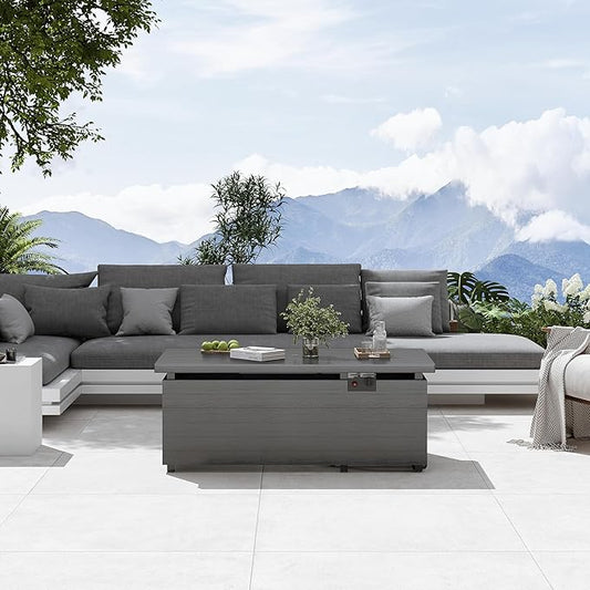 Rectangle Propane Fire Pit Table: 43'' Patio Gas Fire Table 50000 BTU - Rustproof Aluminum Tabletop Firepit Wind Guard Glass Beads - Outdoor Heating for Dining Party Garden Deck - Dark Gray