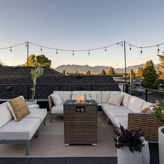 Real Flame Aegean 42in Rectangle Propane or Natural Gas Fire Pit Table, 50,000 BTU, Powder-Coated Steel, Push-Button Ignition, CSA Certified, Lava Rock, Storage Cover, Stainless Steel Burner with Lid